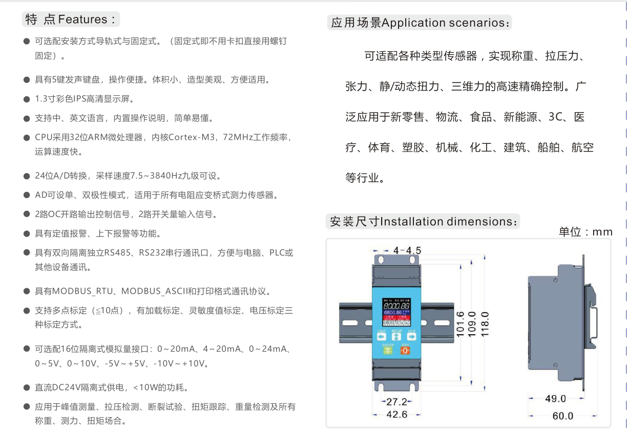 HVC-SZ01系列智能數(shù)字模塊(稱重顯示器)是針對(duì)測(cè)力、稱重、扭矩應(yīng)用的一款高速采樣彩屏顯示智能儀表