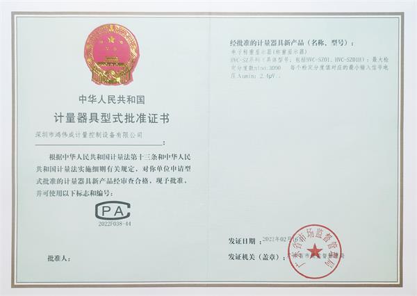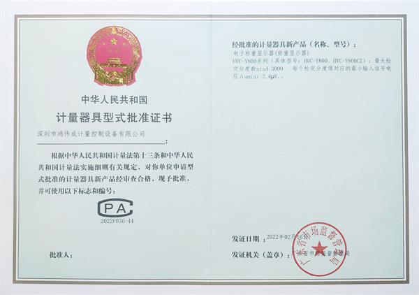 HVC-Y800系列稱重顯示器型式認(rèn)證